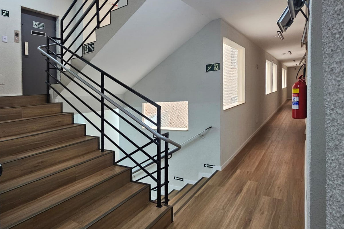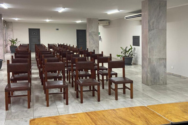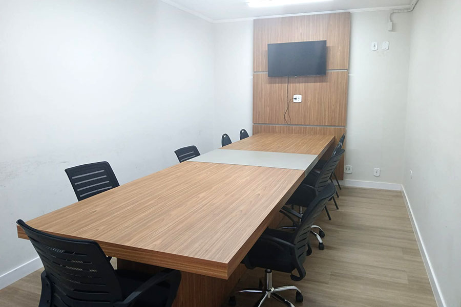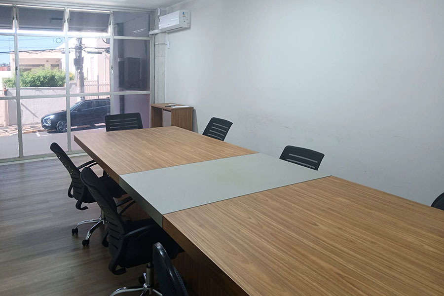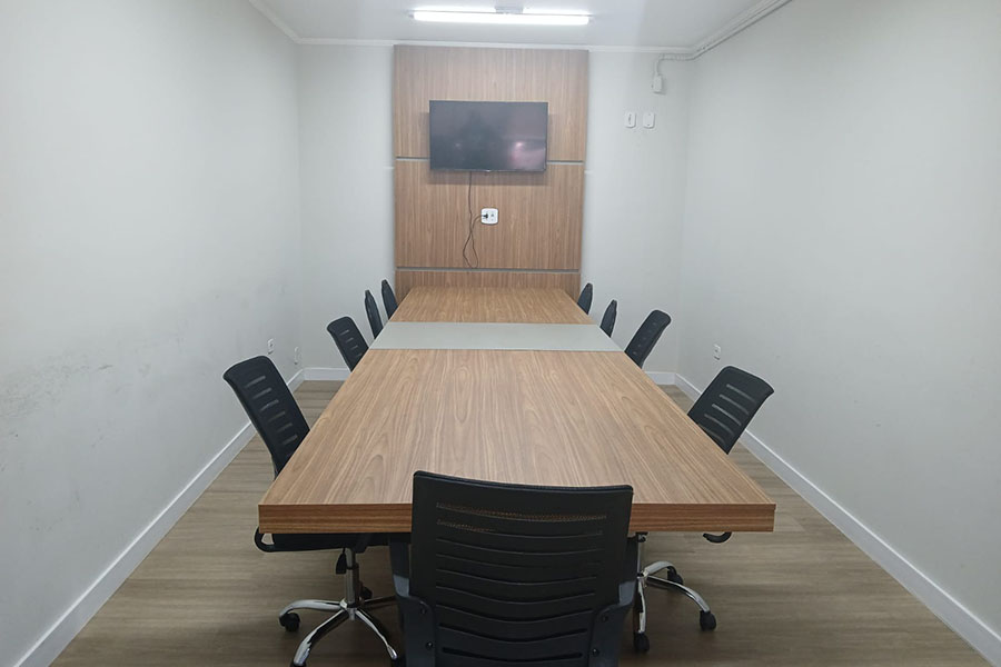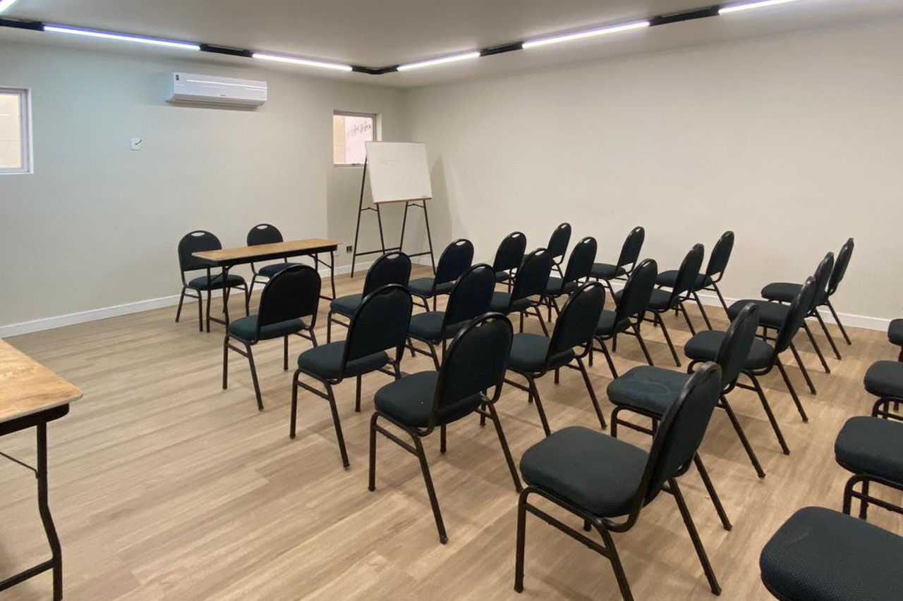 Sala 2: Cerca de 20 cadeiras, ar-condicionado, painel interativo.